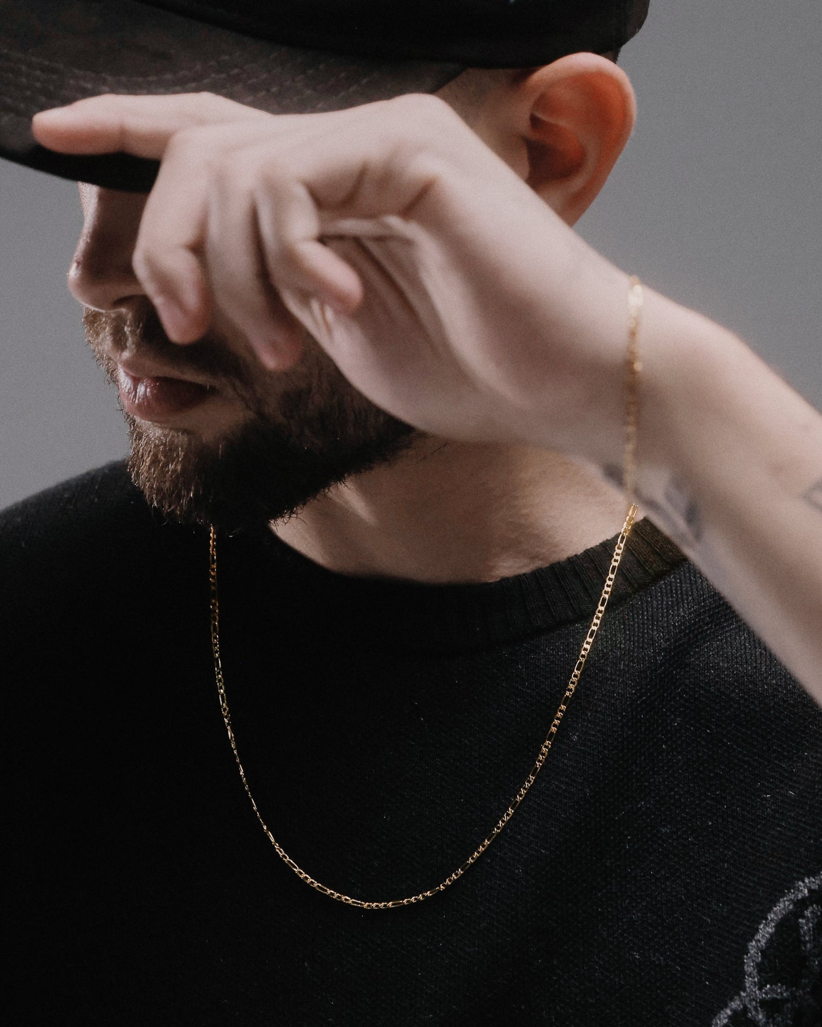 Un infaltable. Nuestra cadena Fígaro de 2 mm es un ícono que no podíamos dejar por fuera de nuestra colección. Su tejido es de superficie aplanada y genera un brillo y un color únicos. Esta cadena se va a adaptar a cualquier situación y va de la mano con todos nuestros dijes.