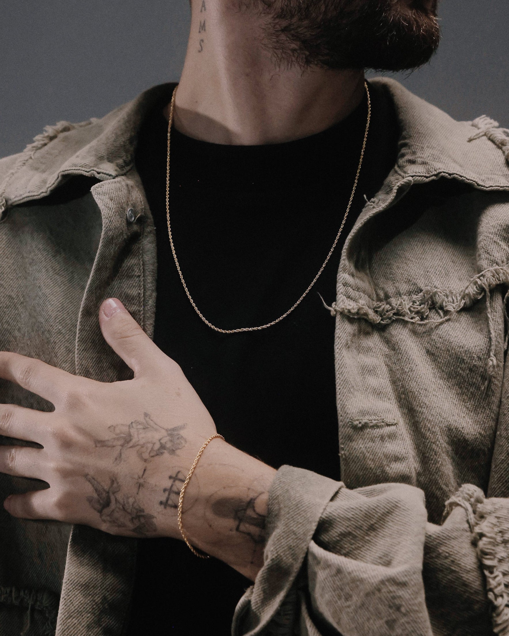 Nuestro pack de Cadena +Pulsera Cowboy de 2 mm es perfecro para usar en cualquier ocasión y no va a fallar nunca. Un clásico y nuestro tejido más popular.